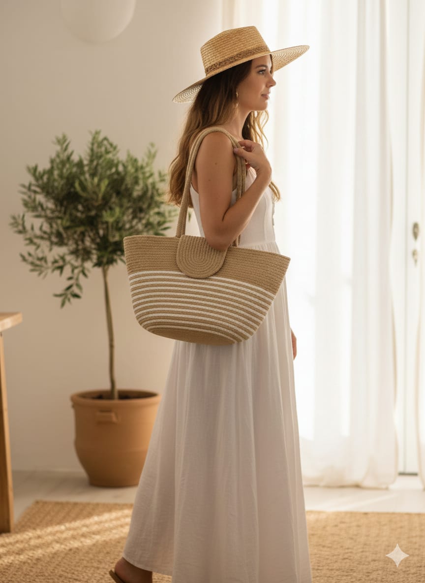 Perfect for beach days, shopping trips, or casual wear, it’s an ideal companion for eco-conscious fashion lovers.